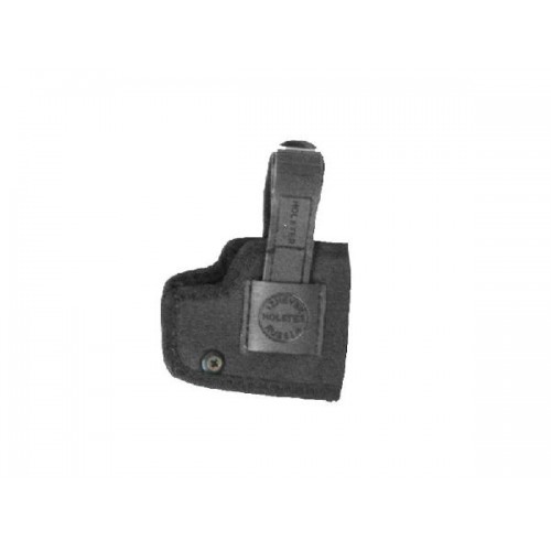 Кобура выполнена из кордуры. Это обеспечивает мягкую, но, в то же время, плотную посадку пистолета. Для надежности оружие, помещенное внутрь, застегивается на ремешок с кнопкой. Пистолет, при желании, можно оперативно извлечь, благодаря открытой рукоятке.