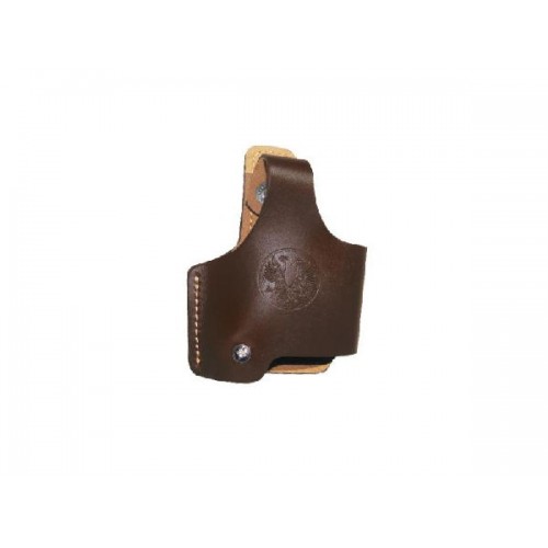 Поясная кобура с помощью специального крепления плотно прилегает к ремню. Это создает удобство при ношении оружия. Сам пистолет фиксируется внутри с помощью ремешка с кнопкой. Открытая рукоятка помогает в его быстром извлечении.