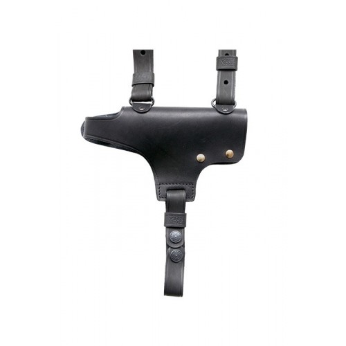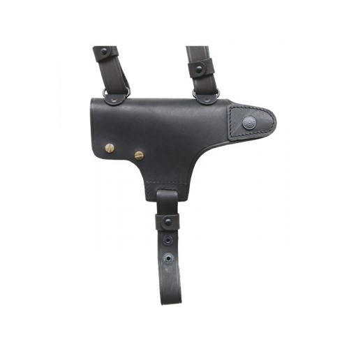 Кобура изготовлена из натуральной кожи, обладающей уникальными характеристиками. Этот материал не боится влаги, ультрафиолета, а также ружейного масла. Корпус пистолета полностью погружается внутрь, снаружи остается только рукоятка. Застежка, фиксирующая оружие, представлена ремешком с кнопкой.