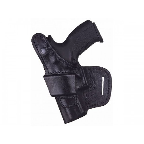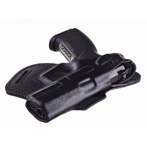 Конструкция кобуры обеспечивает плотное удержание пистолета, поэтому дополнительный хлястик отсутствует, что позволяет привести оружие к бою за более кроткий промежуток времени.