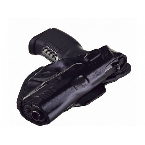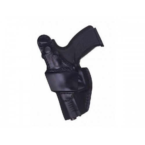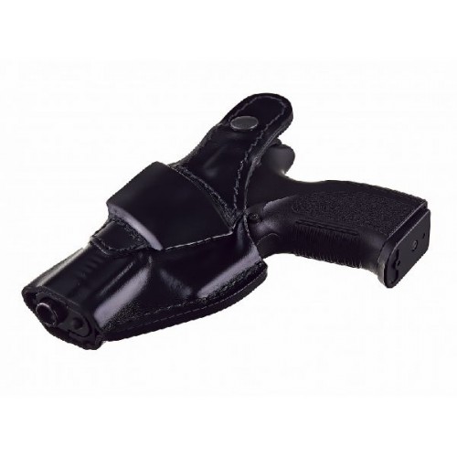 Конструкция кобуры обеспечивает плотное удержание пистолета, поэтому дополнительный хлястик отсутствует, что позволяет привести оружие к бою за более кроткий промежуток времени.
