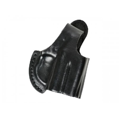 Хотя конструкция кожаной кобуры и предусматривает плотное удерживание оружия, для дополнительной страховки используется хлястик, который быстро отстегивается большим пальцем правой руки. Благодаря крупному отверстию шлевки, кобуру можно закрепить на самом широком ремне.
