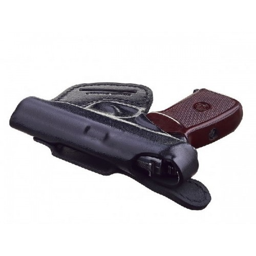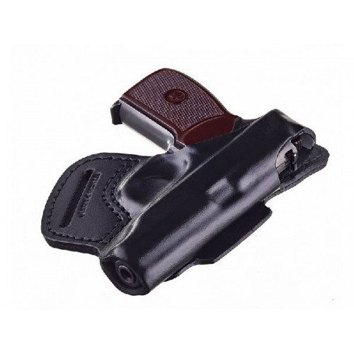 Ухо и шлевка на задней стенке кобуры, через которые проходит ремень максимально прижимают кобуру с пистолетом к поясу, что делает оружие практически незаметным даже под легкой одеждой. Крепление на кобуре по умолчанию рассчитано на максимально широкий ремень, то есть офицерский или «портупейный», шириной 50 мм.