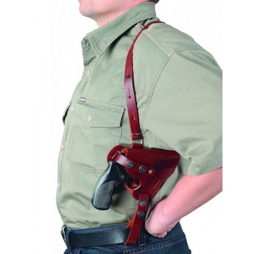 Материал - натуральная кожа высокого качества. Страховочный хлястик регулируется по длине. В нижней части оперативной кобуры для револьвера имеются два отверстия для крепления на поясную систему. Причем, кобуру можно зафиксировать на поясе как в горизонтальном положении, так и под углом в 45 градусов.