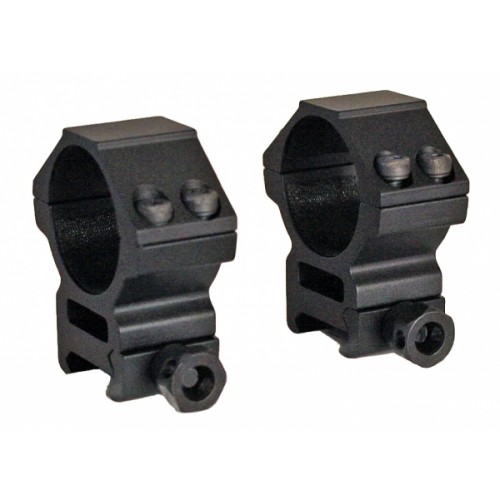 Кольца предназначены для установки прицелов с диаметром объектива до 45 мм. Во избежание повреждений прицела, внутренняя сторона колец снабжена синтетической лентой. Имеется стопорный винт для установки на пневматику. В комплекте запасной крепеж и два ключа для установки и регулировки. Оптика в кольцах фиксируется винтами. Материал - высокопрочный анодированный алюминиевый сплав.