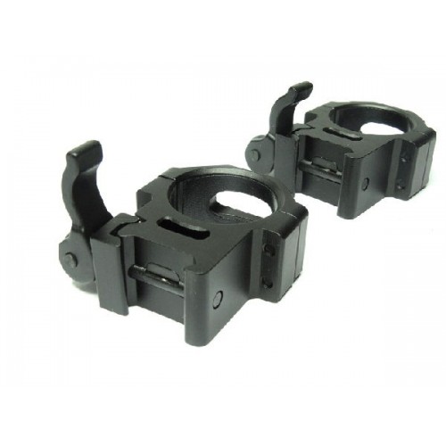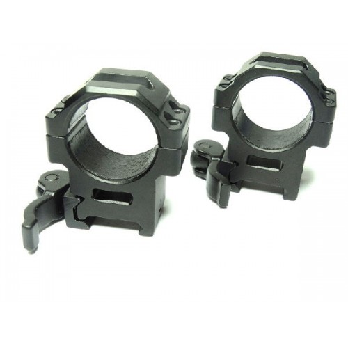 Крепление-кольца Leapers UTG RQ2W3154 предназначены для установки оптических прицелов диаметром 30 мм на посадочную планку типа Weaver/Picatinny. Высота от планки Weaver до оптической оси прицела составляет 30 мм, что позволяет использовать прицелы с диаметром объектива до 60 мм. Кольца оснащены рычагами-зажимами, обеспечивающими высокую скорость и удобство установки и снятия прицела. Прицел фиксируется в кольцах четырьмя винтами. Материал колец - анодированный авиационный алюминий. Конструкция креплений позволяет использовать открытые прицельные приспособления при установленном оптическом прицеле. Кольца неоднократно тестировались в полевых и экстремальных условиях и получили хорошие отзывы экспертов.