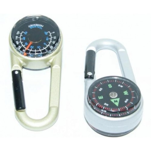 Надежный и долговечный компас в прочном закрытом корпусе. Компас карабин жидкостной металлический с термометром.