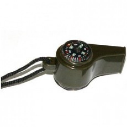 Компас со свистком и термометром, выполнен из пластмассы. Имеется шнур для крепления.