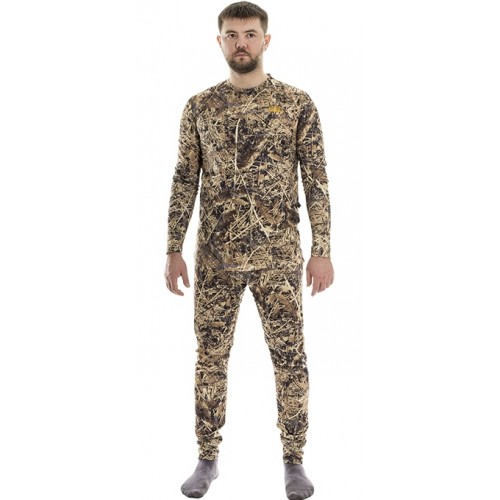 Комплект выполнен из термо полотна на основе полиэстера Polyester . Плотность: 230-240 г/кв.м. Структура полотна позволило создать оптимальную модель термобелья для любых погодных условий. Поверхность тела остается сухой.