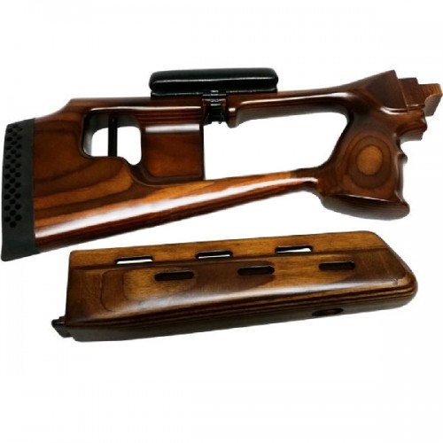 Комплект из деревянного приклада и деревянного цевья на охотничий карабин Сайга 410 калибра.