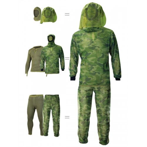 Комплект "Телохранитель" создаёт надёжную защиту от опасных насекомых. Сетчатая структура комплекта обеспечивает свободный приток свежего воздуха для естественной вентиляции тела. Комплект минимизирует использование химических средств для отпугивания насекомых. "Телохранитель" состоит из двух сетчатых слоёв одежды. Нательный слой изготовлен из хлопковой сетки толщиной 4 мм. Поверх него одевается второй слой - антимоскитный, изготовленный из мелкой синтетической сетки. В холодное время года человеку необходима защита от переохлаждения. Нательный слой комплекта создаёт вокруг тела мощную воздушную подушку, которая является настоящим аккумулятором тепла. Этот слой изготовлен из чистого хлопка, и на 60% состоит из воздуха, естественного и здорового терморегулятора. Поэтому в холодное и очень холодное время года нательный слой комплекта "Телохранитель" может использоваться как средний или базовый слой одежды при низкой и средней активности.