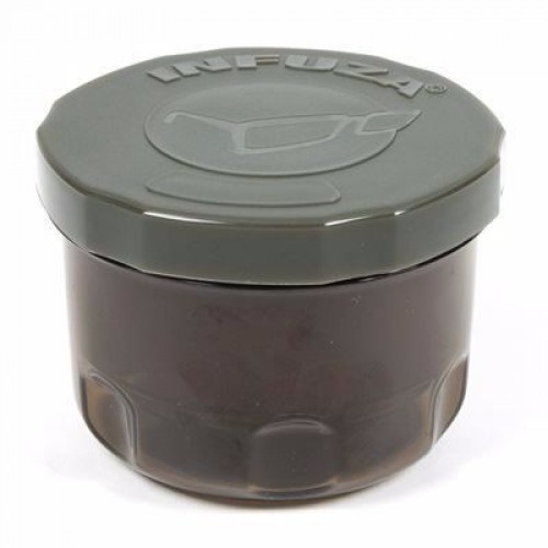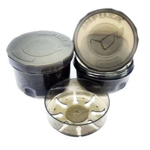 Korda Infuza представляет собой контейнер состоящий из двух емкостей. Первая емкость, в которую засыпаются насадки, имеет несколько пазов через которые просачивается атрактивная жидкость. Такая конструкция позволяет с легкостью замачивать насадки, а затем извлекать их не сливая сироп.
