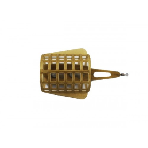 Большая сетка выполнена из прочного, толстостенного пластика. Для улучшения аэродинамических свойств в конструкции кормушки предусмотрены три крылышка, конструкция для крепления лески выполнена в виде длинного плеча с вмонтированным вертлюжком.
