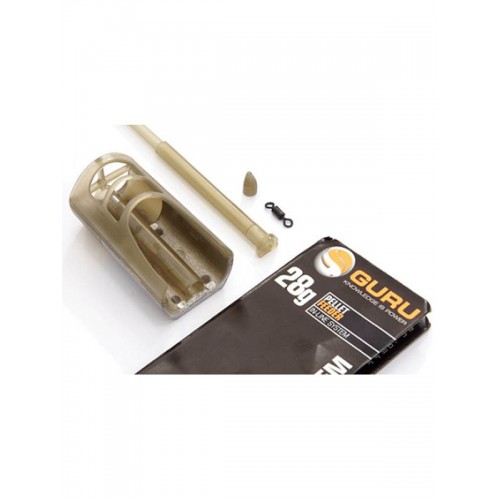 Guru In-line Pellet Feeders – скользящая инлайн кормушка предназначенная для работы с крупными фракциями прикорма типа пеллетса. Благодаря своей конструкции данная модель имеет несколько основных преимуществ по сравнению со стандартными кормушками. Это полузакрытая кормушка позволяет использовать количество прикормки по Вашему усмотрению, исходя из ее конструктивных особенностей, наживка может попасть в рот рыбе только с одного, косо срезанного конца. Благодаря специальной конструкции, она правильно ориентируется на дне и обладает отменными полетными качествами. Напоследок стоит отметить удобство этой системы. Кормушки легко монтируются на основную леску при помощи петлевого механизма встроенного в основание. На стороне поводка встроен вертлюг.