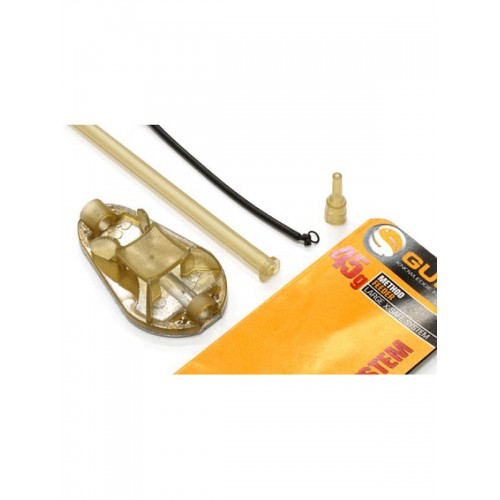 Guru X-safe Method Feeders – фидерная кормушка для методной ловли предназначена для работы с сыпучими прикормками, наиболее эффективна в условиях стоячей воды. Благодаря конструкции Method Feeders летит словно снаряд и всегда погружается на дно грузилом вниз. Специальная система X-safe представляющая собой вставку с эластичным шнуром, надежно амортизирующем сопротивление добыче, уменьшая тем самым шанс схода и гарантируя безопасность самой рыбе. Так же применение эластичной вставки позволяет эффективней работать с плетеными шнурами, которые обладают повышенной чувствительность, но при этом менее эластичны нежели монофильные лески. Максимальная тестовая нагрузка эластичного шнура составляет примерно 12 кг. В случае его обрыва вся вставка легко меняется на запасную. Напоследок стоит отметить удобство этой системы. Кормушки легко монтируются на основную леску при помощи петлевого механизма встроенного в основание. На стороне поводка встроен вертлюг. Оснастить удилище X-safe Method Feeders можно примерно за минуту, и так же быстро и легко поменять кормушку.