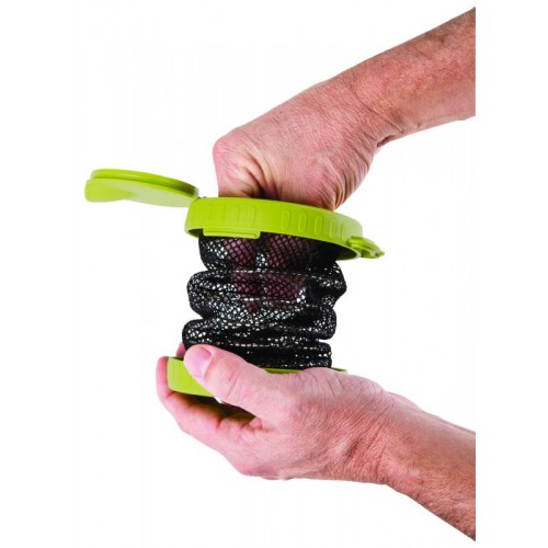 Удобная складная коробочка для хранения наживки. Система складывания в сложенном состянии занимает минимум места, в рабочем состоянии позволяет удобно собирать наживку даже со дна коробочки. Имеет надежную дверцу и петрю для крепления. Всложенном виде высота коробочки 3,8 см, в разложенном 19 см. Диаметр: 11,5 см