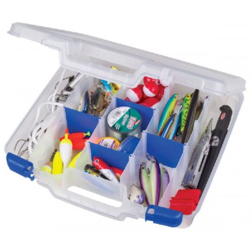 Flambeau 8415 15" Satchel - это коробка, предназначенная для хранения разнообразных аксессуаров, оснасток и приманок. Внутреннее пространство разделено на 5 постоянных отделений разного размера. Помимо этого, в комплект входят 8 съемных перегородок, позволяющих организовать содержимое коробки по усмотрению владельца. Flambeau 8415 15" Satchel изготовлена из полупрозрачного прочного пластика с применением защитного полимера Zerust .