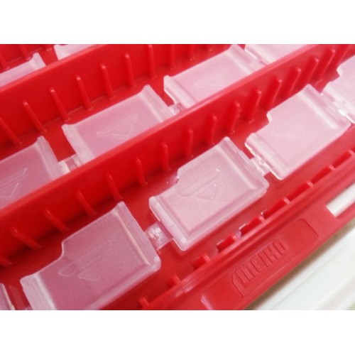 Прозрачные крышки у RUN GUN CASE 1010 W выполнены рифлеными по аналогии с крышками коробок RUN GUN CASE 3010 по технологии Worm Slip . У RUN GUN CASE 1010 W-1 такая крышка со стороны, где находятся отсеки для приманок с разделителями. Благодаря этому коробки стали удобнее для хранения силиконовых приманок, в том числе «съедобного» силикона или приманок из «хитрых» мягких пластиков.