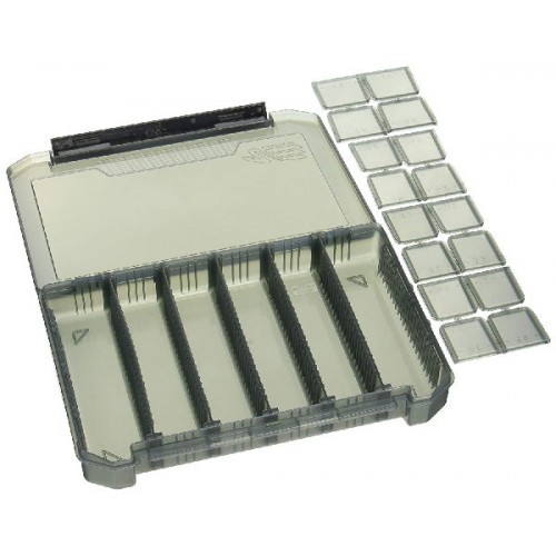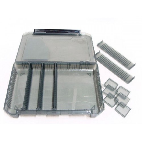 Рыболовная коробка MEIHO Versus VS-3037ND имеет одно большое отделение, которое съемными перегородками можно разделить на 22 ячейки. В комплекте: 5 длинных разделителей и 16 маленьких разделителей.