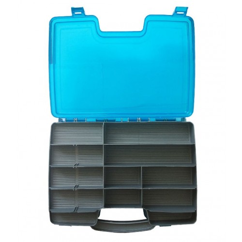 Двухсторонняя коробка из полупрозрачного пластика для хранения приманок. Десять съемных перегородок позволят создать от 16 до 26 ячеек разного размера, что даст возможность удобно сложить как маленькие, так и большие приманки. Прозрачный синий пластик позволит безошибочно и быстро найти необходимый предмет. Все детали изготовлены из ударопрочного пластика, поэтому вам не нужно будет волноваться за её сохранность, а заодно она сохранит и драгоценное содержимое. Материал коробки Plano 1715-02, благодаря использованию термостойкого пластика, не изменяет свою форму даже при нагреве до +45 градусов Цельсия. Благодаря удобной ручке, легко транспортируется.