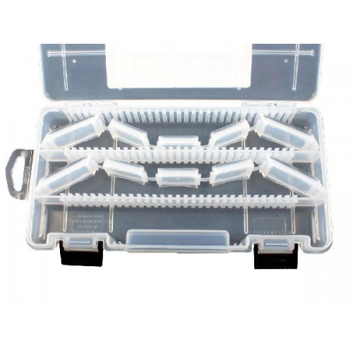 Коробка для приманок Plano 3570-00 сделана из прозрачного пластика. Прозрачный пластик позволит безошибочно и быстро найти необходимый предмет и подобрать нужный цвет. Съемные перегородки разной длины позволят создать отсеки разных форм (4 угловых и 6 прямых разделителя), что позволит с максимальным удобством разместить как мягкие, так и жесткие приманки различной длины. Можно использовать в бытовых целях. Возможность создания до 13 отсеков. Отдельный механизм застежек - прочный и надежный. Материал коробки Polypropylene .