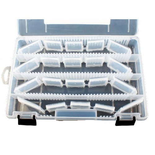 Коробка для приманок Plano 3670-00 сделана из прозрачного пластика. Прозрачный пластик позволит безошибочно и быстро найти необходимый предмет и подобрать нужный цвет. Съемные перегородки разной длины позволят создать отсеки разных форм (8 угловых и 12 прямых разделителя), что позволит с максимальным удобством разместить как мягкие, так и жесткие приманки различной длины. Можно использовать в бытовых целях. Возможность создания до 23х отсеков. Отдельный механизм застежек - прочный и надежный. Материал коробки Polypropylene .