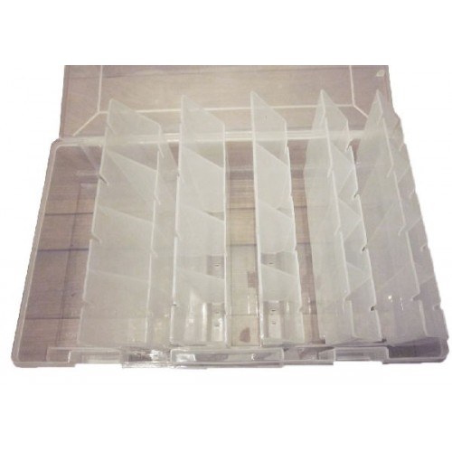 Односторонний бокс. Имеет 20 ячеек для приманок располагающиеся под углом близким к 45 градусам. Это позволит с удобством разместить приманки. Максимальная длина приманки - не более 4,5 дюйма (11,4 см.). Идеально подходит для crankbaits.Так же дает возможность положить как мягкие, так и жесткие приманки различной длины. Прозрачный пластик позволит безошибочно и быстро найти необходимый предмет и подобрать нужный цвет. Можно использовать в бытовых целях. Надежнейшая система запирания. Материал коробки Polypropylene .