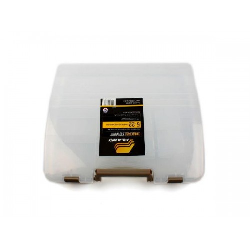 Односторонний бокс, среднего размера с функцией присоединения аналогичного бокса, что позволит создать двухстороннюю коробку. Удобная ручка. Прозрачный пластик поможет безошибочно и быстро найти необходимый предмет. Съемные перегородки позволят создать от 5 до 22 ячеек разного размера, что даст возможность положить как маленькие, так и большие приманки. Можно использовать в бытовых целях. Надежная и безопасная система запирания в виде защелки. Материал коробки Polypropylene .