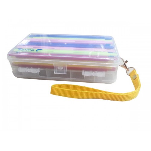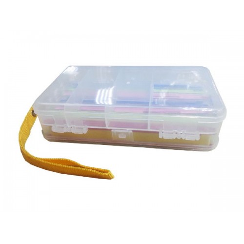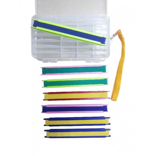 Двухсторонняя коробка с семью мотовилами с одной стороны и шестью отделениями с другой. Коробка комплектуется небольшим ремешком на карабине. Можно использовать для хранения искусственных приманок и мелкой оснастки. Коробка изготовлена из пластика, материал мотовил - пластик и EVA
