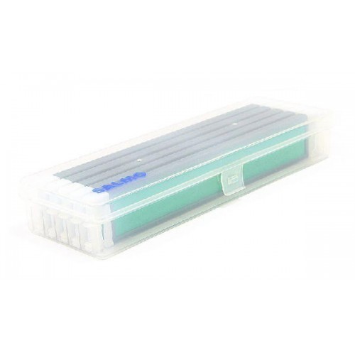 Односторонняя коробка с двойными мотовилами для хранения поплавочных оснасток. Имеет 5 мотовил по 22 см каждый. Коробка изготовлена из пластика, материал мотовил - пластик и EVA .