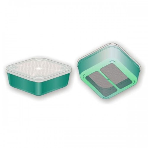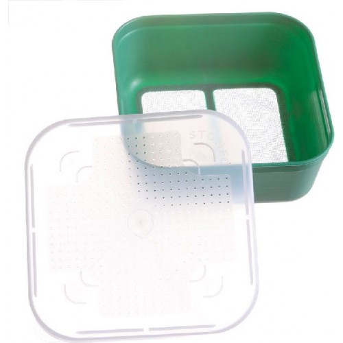 Пластиковая коробка с перфорированной крышкой и сетчатым дном для хранения наживки. Подходит для стандартных столиков stonfo.