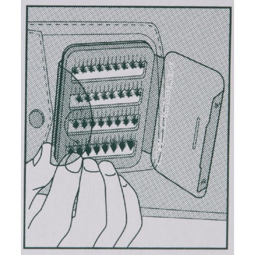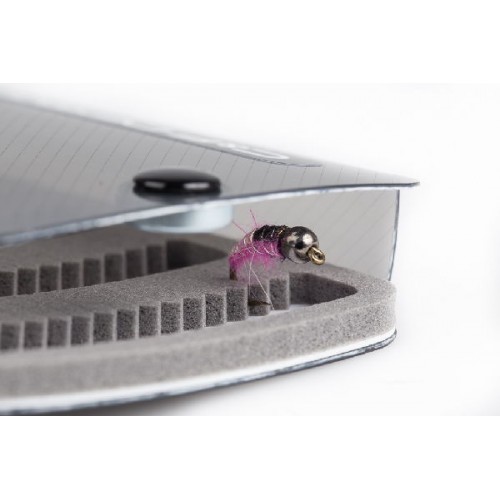 Коробка с прозрачной полипропиленовой Polypropylene крышкой и рабочей поверхностью из мелкопористой EVA пены с четырьмя карманами. Предназначена для мух размеров от #16 и мельче. Количество прорезей - 72.