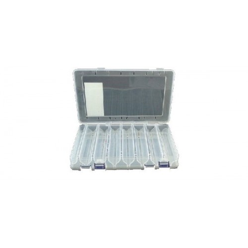 Двухсторонняя пластиковая коробка для приманок с двенадцатью отделениями. Размеры: 20.6x17x4 см