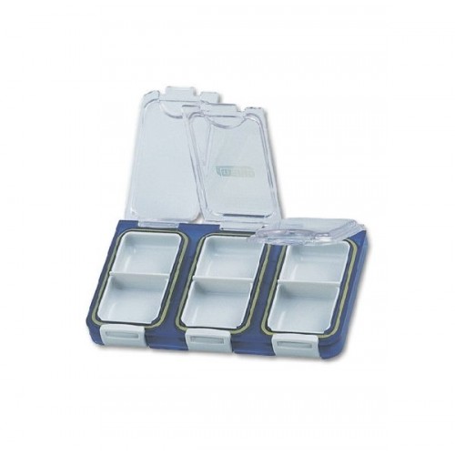 Водонепроницаемая коробка-кассета WG-6 (Meiho) для мелких принадлежностей. Отдельные крышки для каждой секции, защищенные плотным силиконовым кольцом по всему периметру, не позволяют содержимому перемешиваться при транспортировке. Кассеты могут быть соединены по основанию в блок.
