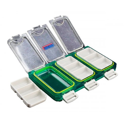 Meiho Water Guard Series WG - серия водонепроницаемых, удобных и практичных коробочек для мелких аксессуаров, элементов оснастки и мух. Корпус сделан из прочного материала - ABS-пластик . Все модели имеют одинаковый габаритный размер: 115x73x18 мм. Отдельные крышки для каждой секции, защищенные плотным силиконовым кольцом по всему периметру, не позволяют содержимому перемешиваться при транспортировке обеспечивают сохранность при попадании в воду.