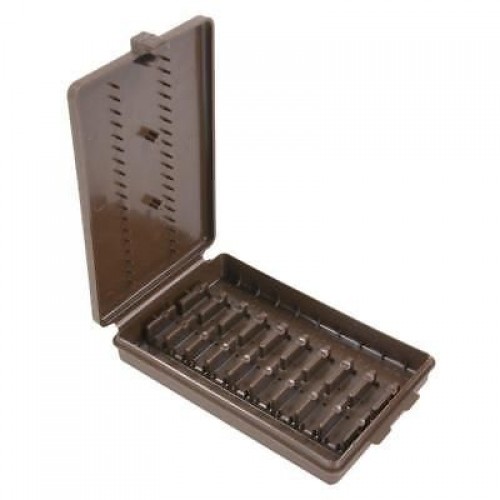 Коробочка для хранения 9 патронов калибров 17 Fireball, 17 / 221 / 222 / 223 Rem, 204 Ruger, 219 Donaldson Wasp, 22BR, 22 PPC, 22 Sav. HP, 220 Rus., 222 Rem. Mag., 22-250, 223 Rem. HP, 224 Wby. Mag., 303 Sav., 30-30 Win., 32-40 Win., 32 Win S. L., 32 Win. Spl., 351 WSL, 6x47, 6mm BR-DX, 6mm Norma BR, 6mm PPC USA, 7.62x39. Материал - пластик. Цвет - коричневый. Не подлежит обязательной сертификации.
