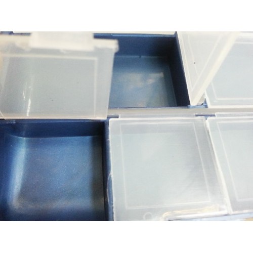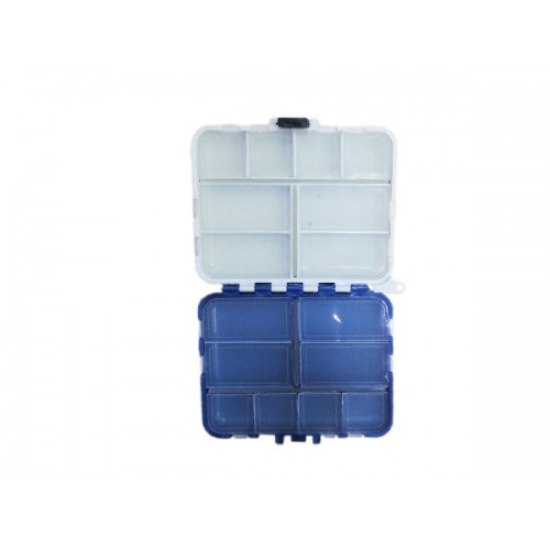 Двухстворчатая многосекционная коробочка для крючков и других мелочей. Каждое отделение створки снабжено защитной прозрачной крышкой.