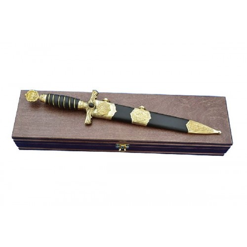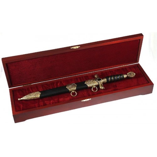 Клинок выполнен из нержавеющей стали и не требует ухода. Кортик запирается на замок в ножны. Не является холодным оружием.