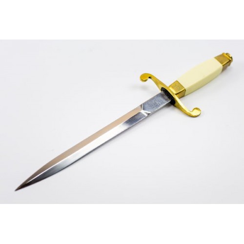 Этот кортик выполнен из прочнейшей стали 65Х13, которая не боится ни нагрузки, ни воздействия влаги, ни быстрого затупления.