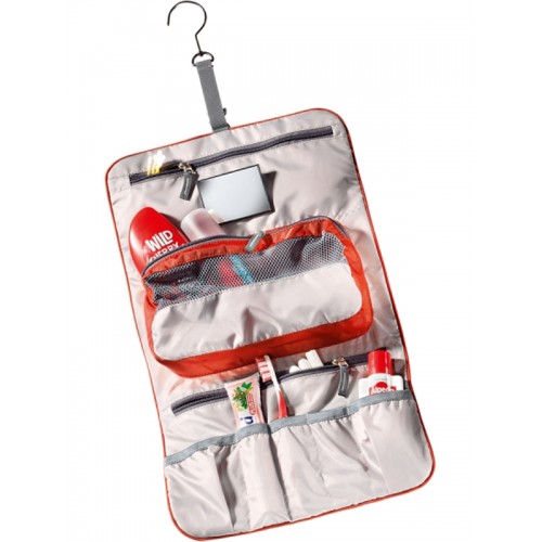 Все необходимые предметы гигиены будут у вас под рукой благодаря косметичке Deuter Wash Bag II. Косметичка представляет собой объёмную сумку с откидным верхом и множеством карманов. В Deuter Wash Bag II есть один сетчатый карман и два отделения на молнии, два дополнительных отделения, пять кармашков для мелочей, пряжка-застёжка, съёмное зеркало и большой крючок, за который вы сможете повесить свою косметичку где угодно.