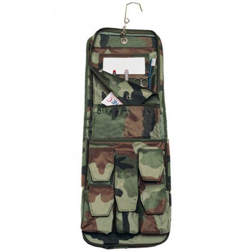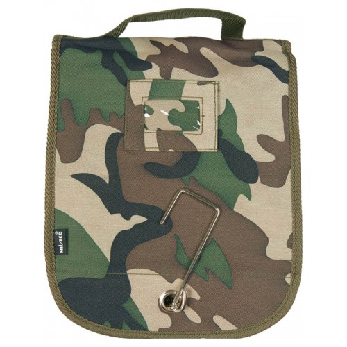 Полевая большая сумка-косметичка для умывальных принадлежностей. Внутри несколько удобных отделений. С помощью крючка можно повесить например на ветку. С пластиковым зеркалом. Ручка для переноски. Цвет: камуфляж французский.