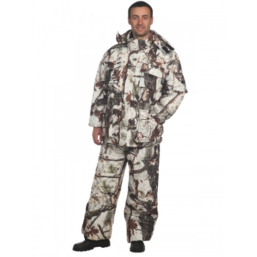 Комфортный утепленный костюм выполнен из современной ткани с мембранным покрытием, состоит из куртки, полукомбинезона и жилета.