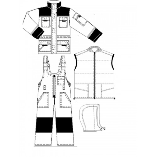 - полукомбинезон с двухзамковой молнией, с усиленными наколенниками;