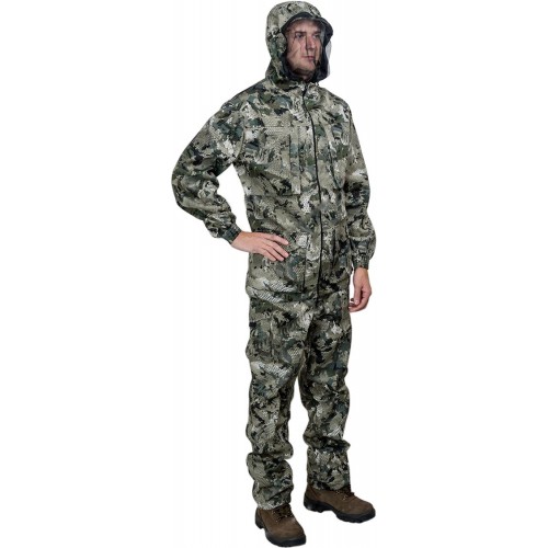 Практичный костюм для леса. Прочность материала и конструкции позволяют использовать костюм в труднопроходимых лесных местах, при этом ничего не торчит, не цепляется и не сваливается. Кроме того, он отличается легким весом, защитой от насекомых, хорошей «дышимостью» и кроем, не стесняющим движений. Материал костюма Смесовая ткань . Охотник дополнительно оценит в костюме бесшумность, растительный «скрадывающий» рисунок и большие карманы под патроны.