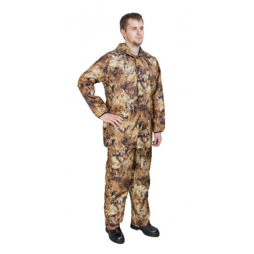 Костюм Хольстер Дождевик прекрасно дополнит любую экипировку. Благодаря особому объёмному фасону костюм легко надеть в качестве верхнего слоя даже на утепленную одежду. Куртка костюма удлинённая с рукавами покроя реглан и многослойной застежкой на кнопки. Рукава по низу обработаны эластичной тесьмой, которая хорошо защищает от проникновений влаги внутрь. В кокетке спины есть отверстия, через которые осуществляется вентиляция. На куртке есть два наружных кармана с клапанами. Низ брюк плотно облегает вокруг обуви за счет кнопочной регулировки. Объём пояса регулируется с помощью резины. Костюм упакован в сумку, которую удобно носить на поясном ремне
