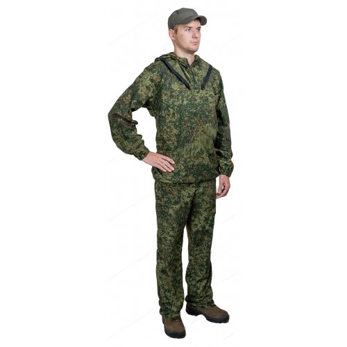 Облегченный мужской костюм для леса в жаркое время года. Это улучшенная версия костюма «Супер летнего с сеткой». Улучшения заключаются в том, что значительно увеличен уровень защиты от клещей, благодаря появившимся на поверхности костюма складкам-ловушкам и созданию максимальной герметичности по низу брюк и рукавов.