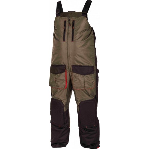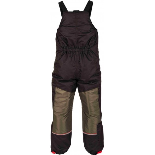 - Для уменьшения потери тепла, лиф завышен, на боковой и задней частях встроены резинки. - В верхней части полукомбинезона два нагрудных прорезных кармана на молнии.