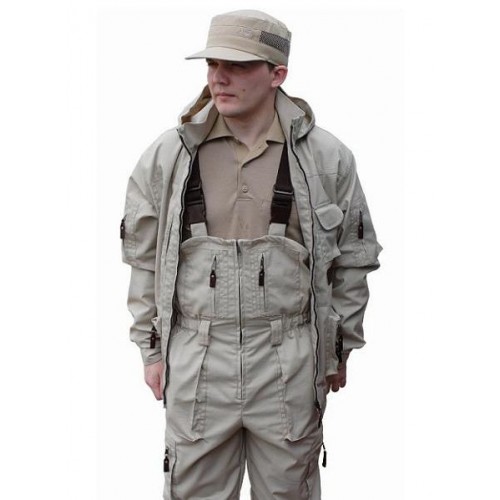 Костюм, предназначенный для охоты и рыбалки, включает куртку и полукомбинезон. Одежда при движении не шумит. Объемные карманы дают возможность переносить с собой все нужные вещи. Водоотталкивающая пропитка ткани позволяет оставаться одежде сухой. Костюм подходит для теплого времени года. Комфортная температура эксплуатации от +10°С до +25°С