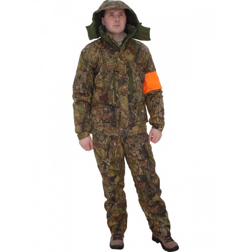Назначение: для охоты, рыбалки в межсезонье, активный отдых. В комплект входит: куртка и брюки. Комфортная температура эксплуатации от -5°С до +10°С. Разработан для охотников и рыболовов, эксплуатируется при температуре около 0°С. Куртка утеплена одним слоем синтепона и полар-флиса. Застегивается разъемным замком с ветрозащитным клапаном. Имеет отстегивающийся капюшон с противомоскитной сеткой. Рукава оснащены съемной повязкой, которая обеспечивает безопасность при облавной охоте. Все карманы закрываются на молнии. Брюки с подкладкой, имеют отстегивающиеся подтяжки и шлевки для поясного ремня. Изготовлены с завышенным поясом, утеплением поясничного отдела спины и клиновидными вставками, увеличивающими полноту. Низ брюк имеет скрытую регулировку. При изготовлении охотничьей одежды мы используем плащевую ткань (твил), которая не шуршит, т.к. она изготовлена из специальной нити с высоким содержанием хлопка. Состав ткани: 35% х/б, 65% п/э, плотность 240 г/кв.м, производство Корея. Для защиты от влаги материал обработан водоотталкивающей пропиткой. Лицевая поверхность ткани имеет брашинг-персиковый эффект. Инновационные камуфлированные рисунки идеально маскируют охотника в любой местности. При изготовлении швейных изделий применяются высокопрочные нитки Guterman (Германия), двойной джинсовый запошивочный шов. Комфортная температура эксплуатации от -5°С до +10°С. Размерный ряд 46-64, рост 170-188.