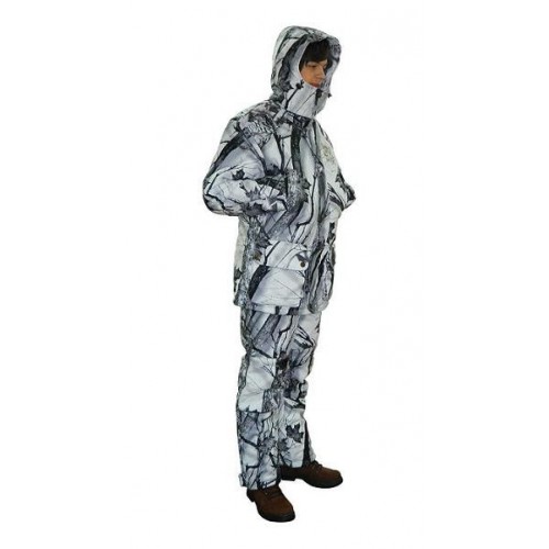Куртка со съемным капюшоном и полукомбинезон составляют отличный зимний комплект для охотника и рыболова. Водоотталкивающая пропитка ткани не дает влаге проникнуть внутрь. А теплоизоляционные свойства материала не позволяют замерзнуть. При ходьбе одежда не шуршит. Паропроницаемость 3000г/кв.м/24ч,водоустойчивость 10 000 мм. Комфортная температура эксплуатации от -20° до - 5°C.